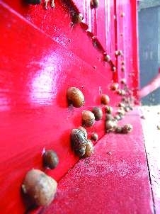 除了“吃“白菜,蜗牛的胆子也越来越大,登堂入室,入驻村民家中。在靠近菜地的村民家门前,尽管是中午时分,墙角、大门上仍趴伏着很多蜗牛,其中不少都爬进了村民家中。“每天早晨,我们都必须清扫门前的路面,每次都会扫一堆蜗牛。”一位村民介绍。
