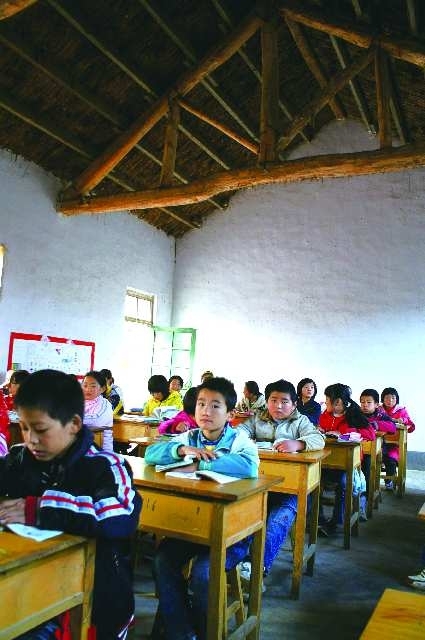 据了解,蔡村小学现有教室都是1985年盖的,用的都是杨木房梁。近几年多处房屋出现了墙体裂缝、雨天渗水等现象,2009年被相关部门鉴定为D级危房。