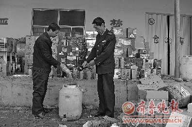 10月25日,庆云县工商局集中销毁了一批假冒洋河蓝色经典、泸州、四特、杏花村品牌的白酒,共计90箱540瓶。据了解,这次集中销毁假冒白酒的方式与以往不同,庆云县工商局没有采取“一砸一烧”的老办法,而是将这些白酒倒入专门的容器内,由一家专门生产机器洗涤液的企业作为清洗原料进行再利用,从而避免了对环境造成污染。