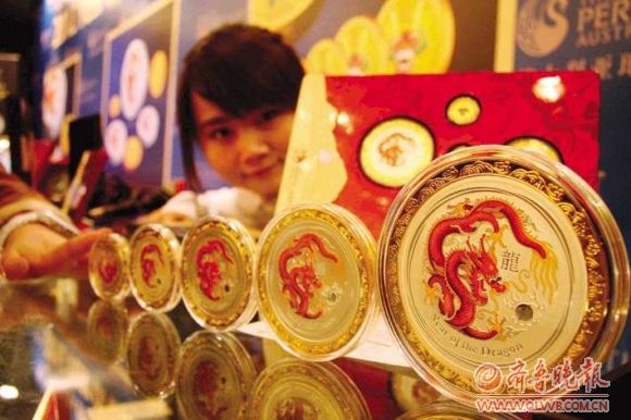 大宗商品的下跌无碍消费者对金银币的投资热情,2012龙年生肖币依然受到消费者的关注。 图/程立龙
