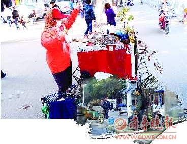 在靠近五里营的济邹路上,很多水果摊主和蔬菜摊主直接将摊子摆到了非机动车道上,附近地面上扔满了烂菜叶和塑料袋。汽车南站附近,一些卖小吃的摊主也将垃圾随手丢在地上。“我们辖区里路边摊比较多,很多商贩都将垃圾直接扔在原地,给环卫工人带来了很多麻烦。”李冰告诉记者,很多路边摊主都不听劝,给环卫工作增加了不少难度。