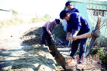 从22日开始,涛雒镇东南营村沿海养殖区村民的自来水全部断水,村里要求养殖户自己挖沟重新铺设自来水管道。村里给予的答复是,由于老管道有人偷水,村里每月都要往里垫六七千元钱,为避免偷水需对水管进行改造。