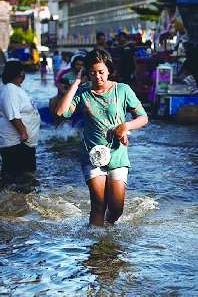 湄南河下游、距离曼谷约15公里的北榄省的码头区域居民现在每年已经有数个月时间必须忍受到达他们脚踝的水位。