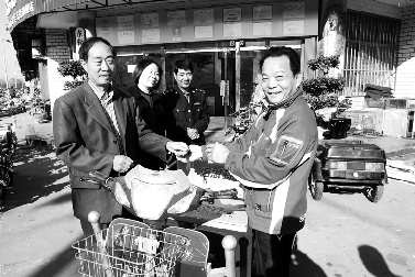 25日上午,在明月市场门口,西城鲁园小区的残疾人王学道得到了好心人王秀国赠送的电动三轮车一辆。据了解,王秀国是省模范个体工商户,多年来一直帮助残疾人,经常给残疾人送去爱心和温暖。