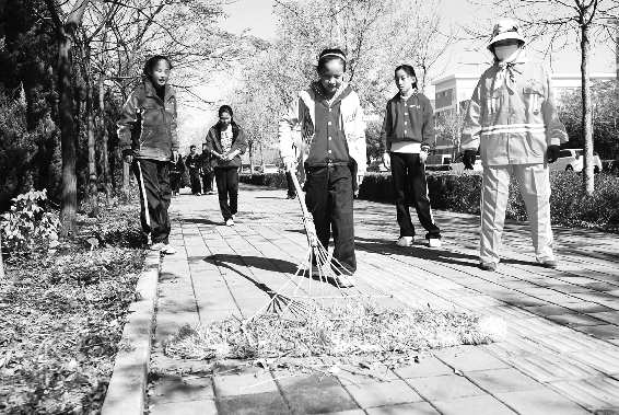 上午9时许,东营市晨阳学校想成为本报校园通讯社小记者的近50名同学集合完毕,清扫四队的数名环卫工人也早已在校门口等待。“同学们,非常欢迎你们今天能来体验我们环卫工人的艰辛,做一次小小的‘城市美容师’,希望你们以后永远都是‘环卫使者’,不乱扔垃圾,理解、尊重环卫工的劳动。”在清扫四队王健队长简单的欢迎仪式后,近50名同学分成4组,在各自负责的区域忙碌起来。