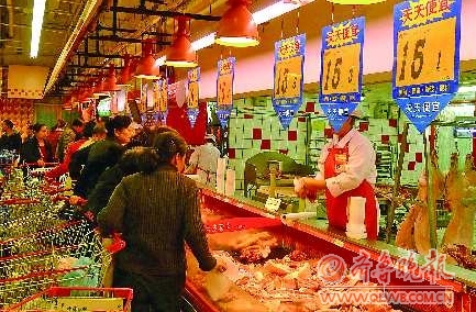 26日,济南文化西路一家超市,前来买肉的市民发现,前段时间每斤一直高达十五六元的猪后腿肉降到了13.8元。据悉,近一周猪肉的平均价格每斤降了一元左右,降价原因是近期生猪出栏量大增,源头批发价就降了近一元。