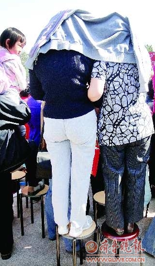自述:观看集体婚礼,共顶一件上衣遮阳。