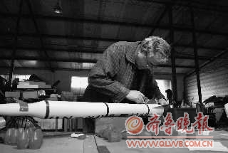 26日下午记者来到孟大爷家中时,他正对一个一米多高的火箭模型进行最后的组装。“这是助推器和尾翼,等加上火药后就能飞起来了。”孟大爷一面给火箭模型装着尾翼一面介绍,“别看这个模型1.35米高,整个重量也就200多克,但它能飞200多米高。”孟大爷告诉记者,火箭内可以装上彩纸、条幅和降落伞,待火箭升到高空后,利用火药的推力将彩纸和条幅弹射出来,最后弹出降落伞,使火箭模型再慢慢的落到地面上,如果爱惜着用,一个这样的火箭模型可以重复使用30多次。