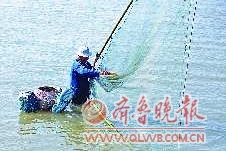 ⑥虽然忙碌了两个多小时,胡顺利虾篓里并没有多少毛虾。