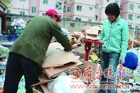 26日下午,记者在几家小型废品收购站看到,站内冷冷清清,有的老板甚至在门前睡起了觉。记者采访了黄河八路渤海九路的一处废品收购点的老板。老板告诉记者说,从“十一”过后废品收购价格就开始下跌,废旧纸箱每斤从6毛钱跌到4毛钱,铁从1块5毛5跌到1块钱,啤酒瓶价格也下降了五六分钱,“一周前我们往废旧纸箱整理点送了一车的废旧纸箱,那一车得有一吨重,我们全赔了。收的时候是5毛8收的,我们再卖的时候人家只给5毛钱,一车得赔了一百五六十块钱。”老板表示,现在他们由于不知道明天废品价格会跌到什么程度,现在都不敢收废品了。