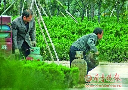 10月26日,在德州河东大街,两辆移动灌装煤气的三轮摩托车当街进行煤气灌装,周围的空气中弥漫着浓重的煤气味,而且其中一人还抽着香烟。