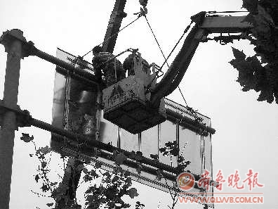 25日,在德兴北路与大学路交叉口附近,工作人员正在对指示牌进行更换。据了解,因为地名的增加,工作人员将对全市26处指示牌进行更换。