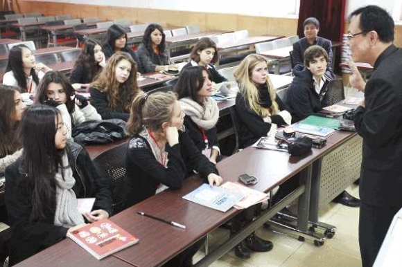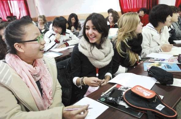 26日,17名法国师生走进聊城三中,并和该校高中生结对子,一起上课和交流。
