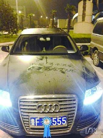 作品描述:我家附近停车场有辆车停了一个星期了,脏得不像样。有意思的是,车上竟然写着:不是哥不洗车,。