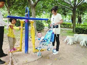 作品描述:把小孩和童车一起摆到体育器材上晃,真是个聪明妈妈。