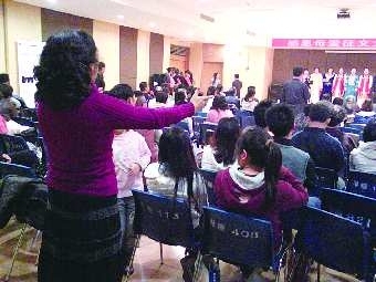 作品描述:在烟台少年宫看到一个男女声合唱的节目,大家唱得整体划一。再往后一瞧,原来指挥站在这里呀!真成“”了!