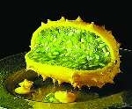 火参果:亦称“非洲蜜瓜”,英文名Kiwano,原产于非洲南部沙漠中,藤本蔓生植物,成熟时长有带刺外皮,多汁,味道似香蕉、柠檬和黄瓜的三种混合。目前这一水果新品种已获美国园艺师加以改良培植,在美国加州为数不少的果园中种植。最近也已在国内进口水果市场上现身,售价为5至10元人民币一只。