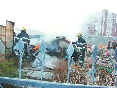 2011年10月25日下午3时19分,西城胜南社区南苑3区板房着火。东营消防支队黄河中队全体官兵经过十几分钟的奋力扑救,终把大火扑灭。 本报通讯员 张菲 马云玲 本报记者 李金金 摄影报道