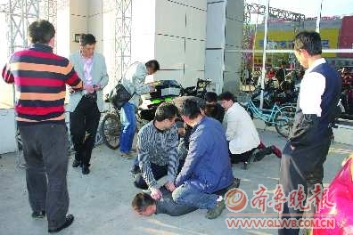 24日16时许,专案组民警在城阳批发市场附近的崇阳路上发现了两名犯罪嫌疑人。当犯罪嫌疑人骑摩托车行驶到人车较少的一处房屋后面时,专案组民警突然出击,当场将犯罪嫌疑人摁倒在地上控制住,缴获作案用摩托车及手套等工具,并根据供述在嫌疑人暂住处缴获作案用刀具以及被抢香烟等赃物。