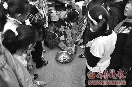 车子周围围满了孩子,虽然孩子们看到王墩存的“家当”后,很不理解一家人的生活,但他们还是你五毛他一块地给王墩存捐着钱物。钱虽不多,可王墩存却坚持一一表示着感谢,虽然他的南方口音让很多小学生听不懂。