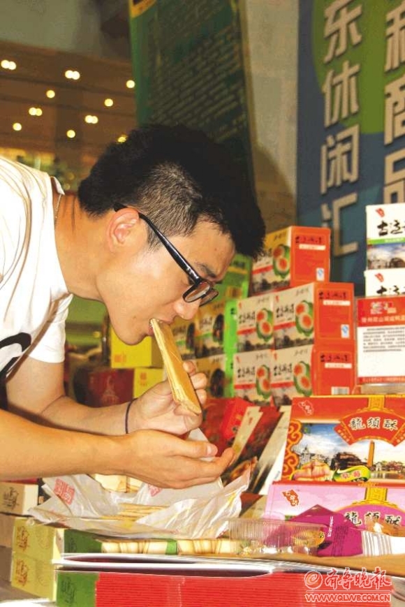 “出来旅游总是少不了买些当地的土特产带回去,但往往每次只能带一两个地方的东西,这次来青岛居然能同时买到山东省17地市的美食和商品,此行真是太幸运了,而且还有这么多的优惠,这时候不多买点以后就难有这样的机会了。”在百丽广场美食商品展区,不少来自外地的游客都发出了这样的感叹。站在百丽广场楼上,放眼往下望去,只见每个地市的美食商品展区前都站满了人,像赶年货大集一样热闹。有的市民正在津津有味地品尝着枣庄生产的蟹黄酥,有的游客则对着日照的黑陶好一阵研究,更有许多市民和游客已经掏出钱买起了德州扒鸡,他们脸上都堆满了笑容。