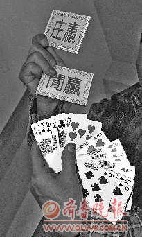 在查处当天,民警从一名赌徒身上搜出了一个小瓶子,里面放着一个类似隐形眼镜的镜片。“通过检查,这竟然是一个透视眼镜,能够看透麻将和纸牌。”