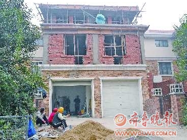 3日上午,记者在该小区内看到,正在施工的别墅不下10栋。这些别墅大都是带庭院的三层建筑,线条优美,庭院宽敞。然而,如今这些小别墅的庭院缩了水:有的在一层的门庭旁扩建了二层三层,有的在庭院区盖起了楼房,还有的把庭院部分挖空建起了地下室。
