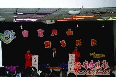 为给临沂市莒南县涝坡镇中心小学贫困留守儿童募集到更多的善款,3日晚,青岛科技大学传播与动漫学院组织近千名学生在礼堂进行活动。据了解,参加拍卖的物品有字画、手工艺品等,均为学生创作,价格在60元—200元不等。此次爱心拍卖共得到1952元善款。