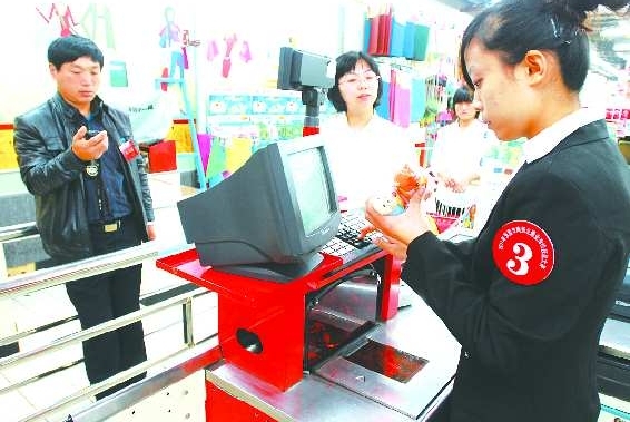 上午9时许,在胜大超市锦华店一楼的收银台上,收银组的比赛正式开始。收银组共有23名选手参赛,每位选手必须在规定的时限内录入30件商品,其中包括20件扫描商品和10件手工录入的商品。“我们主要考察的是参赛选手的扫码、找零是否准确,在此基础上,用时最短的选手获胜。”收银组的裁判员告诉记者。