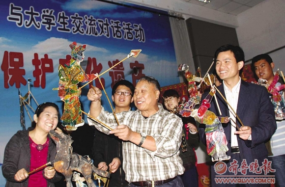 3日晚,山东科技大学举行“弘扬传统技艺保护文化遗产”活动,请来泰山皮影戏第六代传承人范正安,首次进行网络直播皮影表演,并与全国的大学生互动交流。