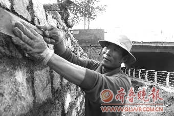 3日,在春鸢路铁路桥东侧,工人正在重新垒砌石质围墙。记者从施工单位获悉,由于春鸢路铁路桥东侧围墙年久失修,已经出现了局部损毁现象,为了避免因雨天冲刷导致石材脱落,造成不必要的人员受伤,市政部门决定将石质围墙进行重新垒砌,工程预计当日全部竣工。