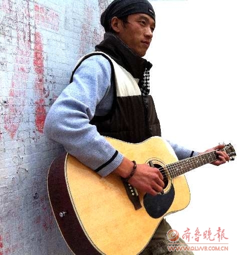 “他们认可我”,赵荣誉说,有人会站着欣赏,有的人会点歌,有的会记下他的电话,在潍坊,他一天能赚一百五六十元钱,最近他用赚来的钱买了一把1200元钱的新吉他,音质更好。
