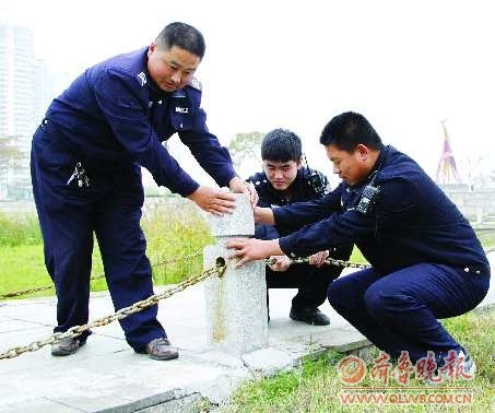 11月3日下午,孟凡启像往常一样对凤凰广场到书法广场片区的滨河景区进行常规巡视,在凤凰广场的芦苇池边,孟凡启看到几根被人推倒的水泥栏杆,他和队员走上前去把栏杆扶正,并一再叮嘱与他一起巡逻的队员一定要告知管理所,尽快把坏掉的栏杆修好。