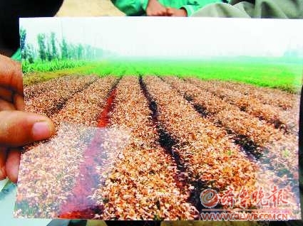 据村民付文峰介绍,这片厂区建于2009年,刚开始的时候生产漂白剂,2010年9月份圈出一部分地方租给了现在排放气体的厂家。“新来的厂子到底生产什么,没有人清楚,问厂里的人,也都不说。”付文峰说,2010年该厂家开始生产的时候,种在厂家周围80米以内的小麦出现叶面干枯变黄的现象,且颗粒无收,受害面积约有8亩地。