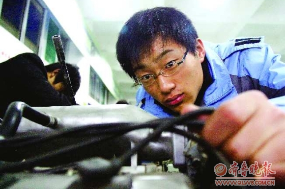 陈煜江所学的这个专业,以操作技能为主,学习汽车驾驶、维修、现代汽车新技术、故障诊断技能。