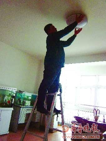 2日下午,记者随着工作人员来到A座17楼的张女士家中,工作人员架上凳子,取下灯罩,检修灯管,同时提醒张女士可以趁他修灯的空儿,顺便擦擦灯罩。对于这个提醒,张女士立即接受了。