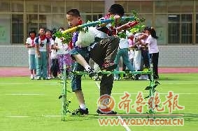同时,舜耕小学把学校的校本课程———舜文化与体育结合起来,形成了独具特色的舜康体育活动。这是一种充满童趣的情境化文化体育活动,其中的“毛毛虫竞速”源自舜时期骑兽农耕的传说,“大河飞渡”拟意上古游泳场景,还有“春之播种”、“我是狩猎小能手”、“丰收乐”等充满浓郁舜文化特色、趣味盎然的健身活动。