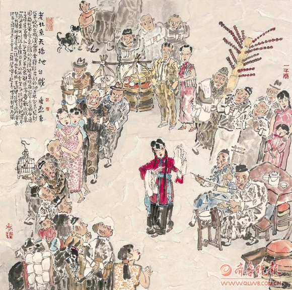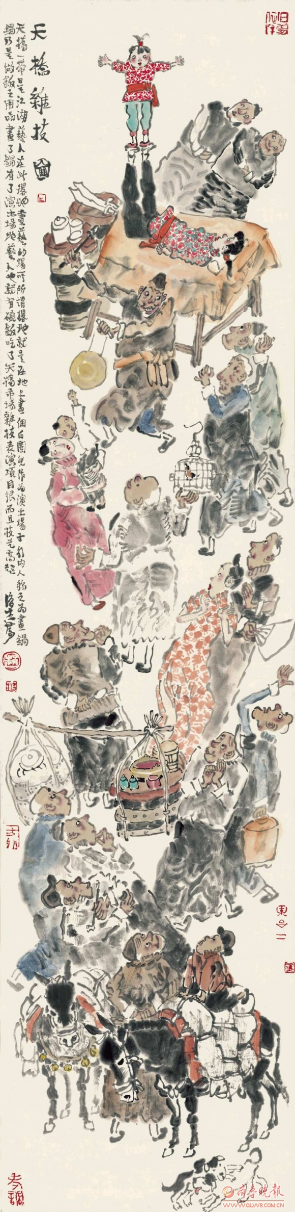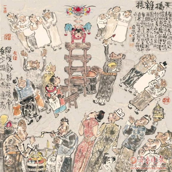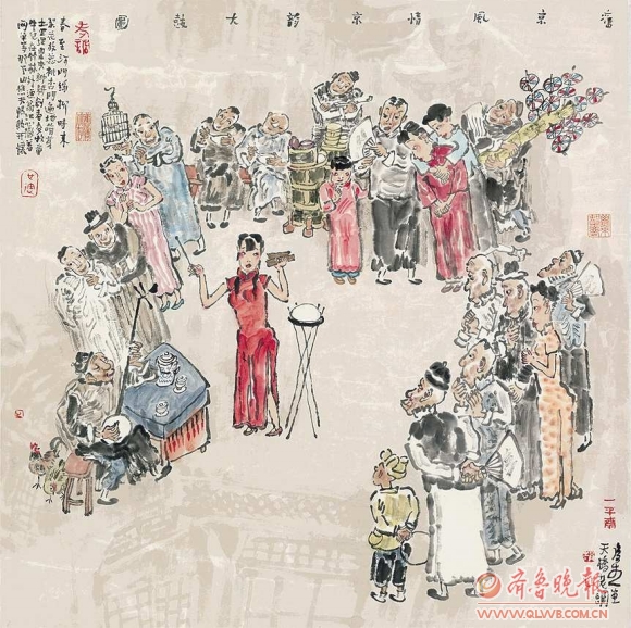 注意他们的穿着打扮、形象身份和手足动作。特别是每个人的眼神,刻画起来活灵活现,让人看得津津有味。他认为,中国画创作的基础是传统。而传统与现代并不矛盾,要互取互补、共同发展。当代创作既要有中国民族风味又要符合当代精神:“有时候学生拿创作的问题请教我,我首先会告诫他们不能一味注重当代,要去寻根,把基础夯实,这是中西结合的前提。”