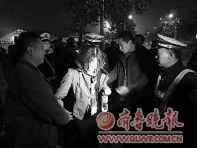 在对一辆轿车检查时,面对民警要求出示驾照的要求,一女车主闭口不言,既不出示驾照,更不愿酒精测试,后来竟索性闭了车灯,坐在车里。