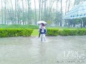 据“红袖daling”介绍,11月4日,下着大雨,她去驾校练车,走到驾校门前傻了眼———驾校门前的路已经看不到了,眼前是一条大河,视线可及范围内全是水。这时,从公交站点又过来两三个人,她们一起困在了河这边。河的那一边有四五个人撑着伞说笑着,一个小伙子最醒目,他的旅游鞋、膝以下的裤腿全是湿的,再看那几个女生撑着伞清爽地站在那里,她刚开始以为那几个女生是有车送过来的,那个男生应该是趟水过去的。