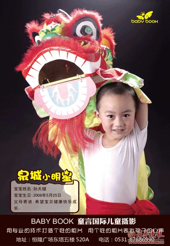 泉城小明星上报栏目,展现孩子童真的笑颜,表达父母的祝福与期望,同时具有纪念意义。本栏目由金色童年独家推出,具体刊登事宜请与金色童年策划部联系。