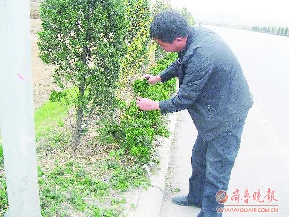 8日上午9点,记者随东港区公路局工作车辆沿335省道行驶。路两边栽种了大量龙柏,十分苍翠。这些松柏最近成了不法分子盗取对象,11月一周左右的时间就发现盗取苗木十余次。