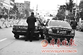 8日,记者在青檀路新昌市场附近看到,两辆轿车发生碰撞,幸运的是车内人员并无大碍。