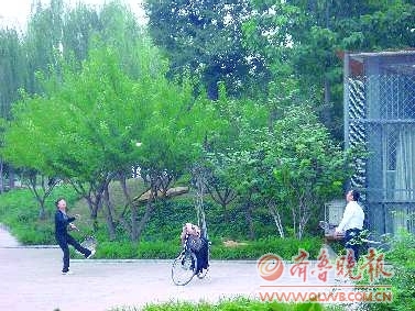 自述:两人将自行车横在中间当网,高兴地打起羽毛球。