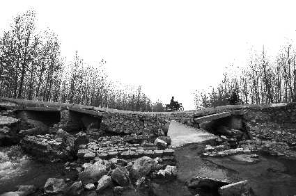 “2008年5月河里建了沙场,开始无节制地采沙,我们多次劝阻,他们都不听。后来桥面开始塌陷,去年6月份,河水上涨,又把桥给冲坏了,成了现在这个样子。”李秀民说,虽然河里的沙子属于管家庄村,但采沙场开办的合同并没有经过村委的同意。“我们已经通过镇党委与采沙场多次协调,但都没有结果。”李秀民说。