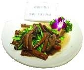 例如,做一道标准的韭菜炒海肠是这样的:海肠500克、韭黄100克、花生油25克、食盐3克、味精1克、料酒5克、香油2克;海肠鲜活。将海肠切成4cm长的段、将韭黄切成3.3cm长的段;炉灶宜选用燃气灶、炊具宜选用单柄炒勺或双耳煸锅。具体做法是:先将海肠放入沸水中一烫,再在冷水中一冲控干水分;随后,油25克下勺,将韭黄炒到八成熟,再加入海肠下勺略炒,加绍酒、食盐、味精、翻炒均匀,加芝麻油少许盛出即可。就连盛韭菜炒海肠这道菜的器皿,标准上也建议选用直径为30cm(十二寸)的平盘。