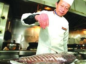 经过近一年的起草、修正、审核、论证,首批13道鲁东菜地方标准出台了。在标准制定者中,就有咱烟台福山的两名专家级厨师张吉顺和王良,他们参与了鲁东菜传统菜、民间菜和创新菜三大类、近百种菜品地方标准的起草制定。8日,在张吉顺所在酒店的厨房里,他拿着标准菜谱说:“跟着标准学,大家就可做出正宗的鲁菜。”