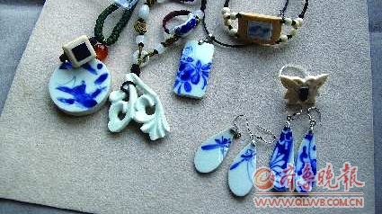 值得一提的是,对于其中一些存世量较大的废瓷,聂先生还进行了精心的创意加工,将片片碎瓷加工成摆件、饰品、挂件等,如一个具有“大明成化年制”的杯底,被他精心地用红木包裹起来,制成摆件;一个一厘米见方的青花鸟纹残片,被他用象牙装饰起来,制成一枚手链。