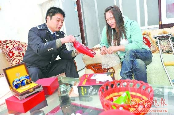 11月9日,定陶县公安局南王店派出所民警带着生活用品、无线上网卡等,来到亚残会、第八届全国残运会冠军崔建金家中,为她送上温暖和关爱。
