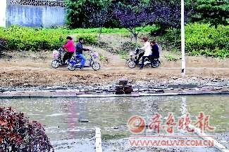 近日的小雨又使泰玻大街东段积水。图为浑水漫路,市民只能穿行绿化带。